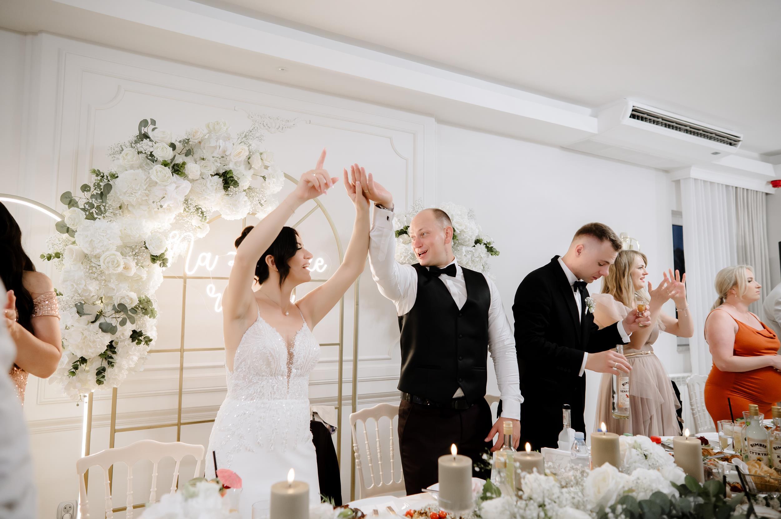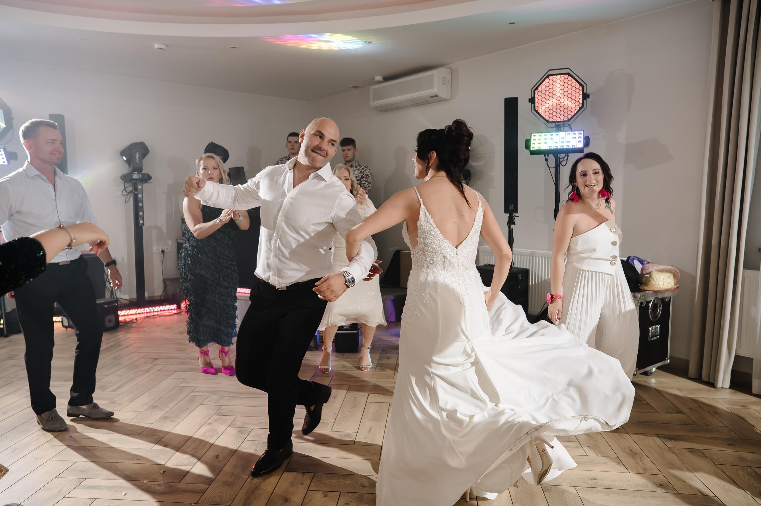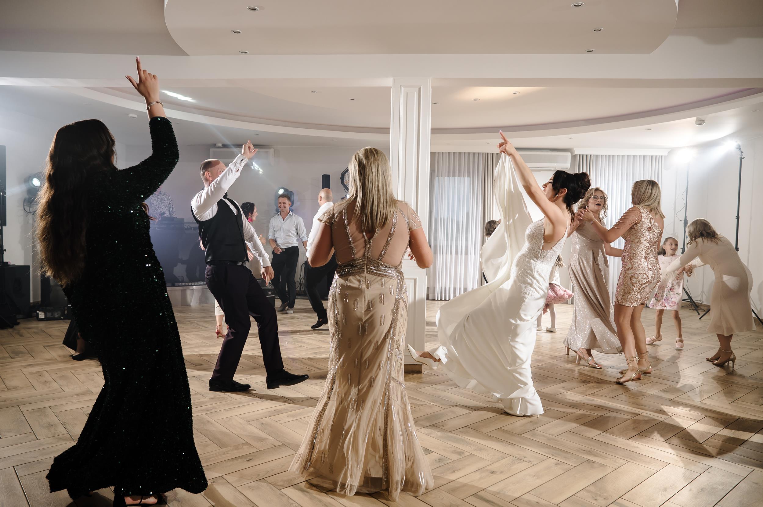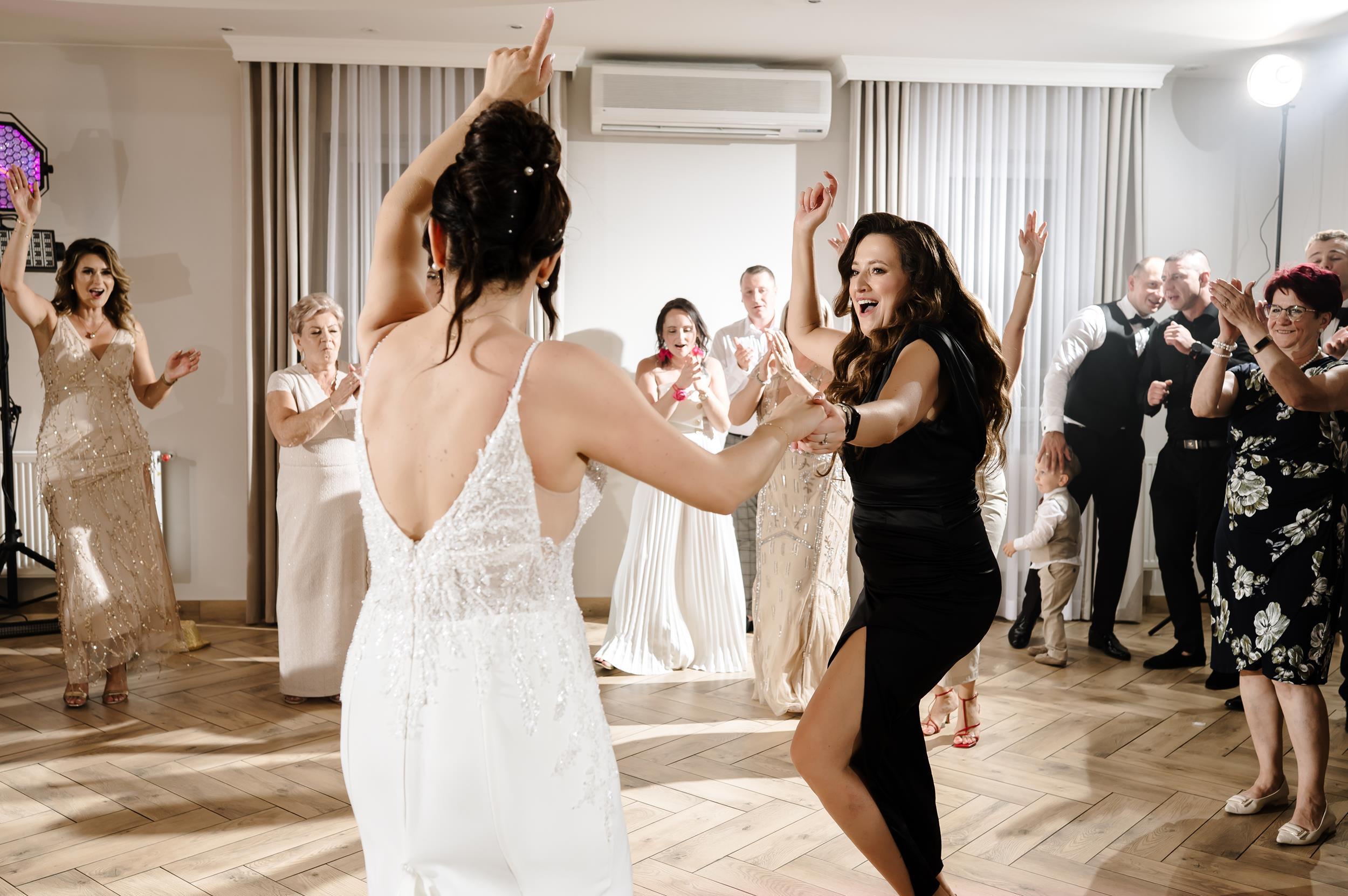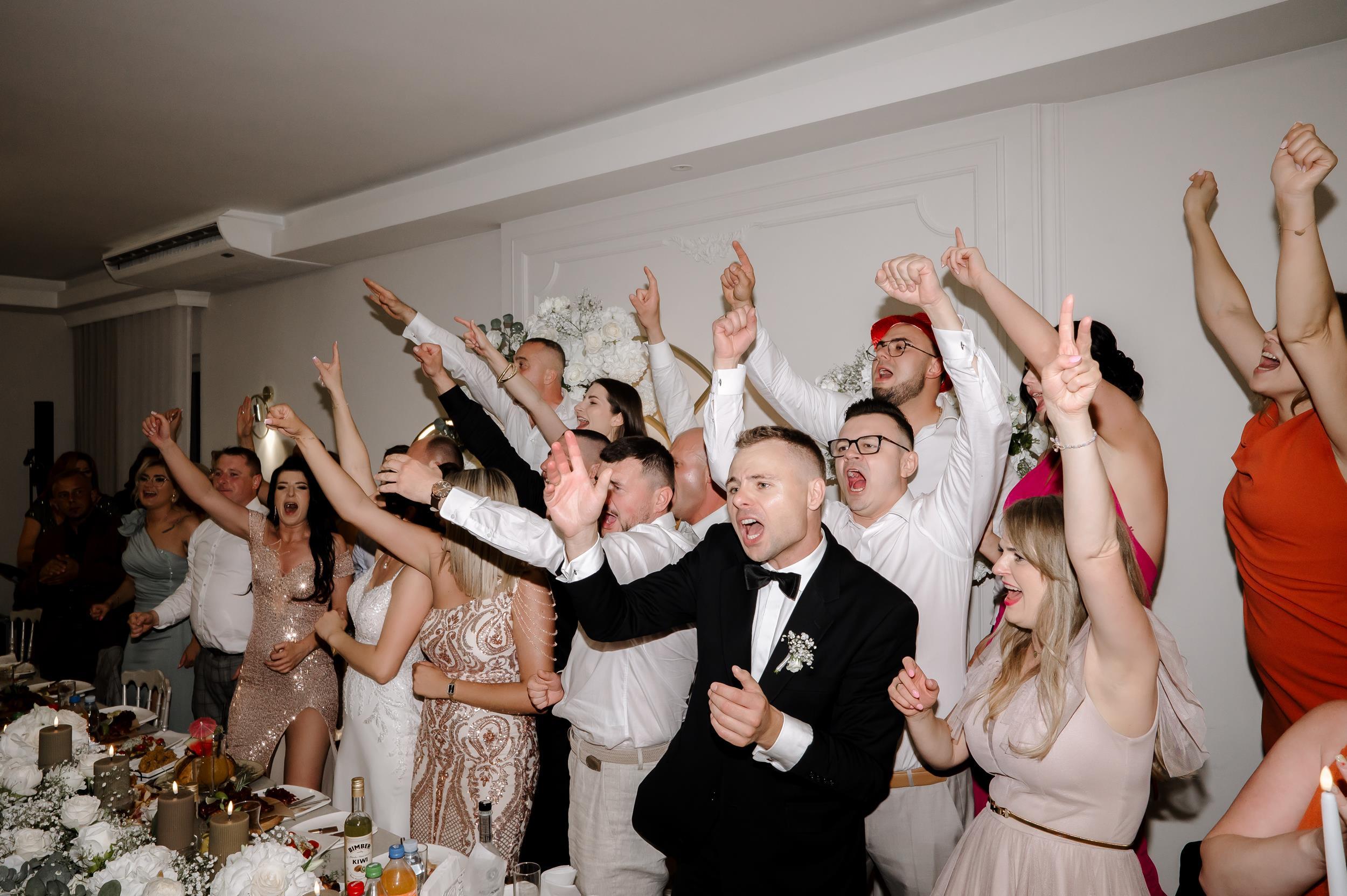 Po ceremonii przenieśliśmy się do Sali Honotu w Lasowicach, gdzie zabawa rozkręciła się błyskawicznie. I nie – to nie są puste słowa. Ten parkiet naprawdę płonął! Dawno nie widziałam tylu roześmianych twarzy i tak dobrej energii. Były klasyczne tańce, rodzinne wygłupy i momenty, które aż prosiły się o zatrzymanie w kadrze.