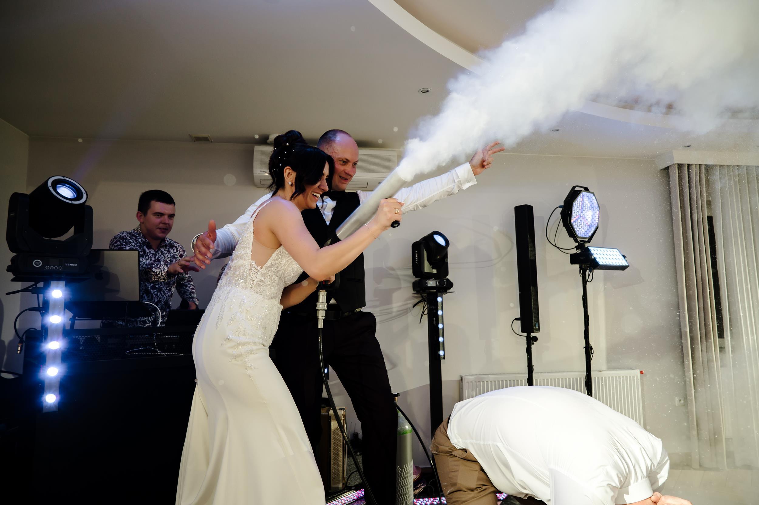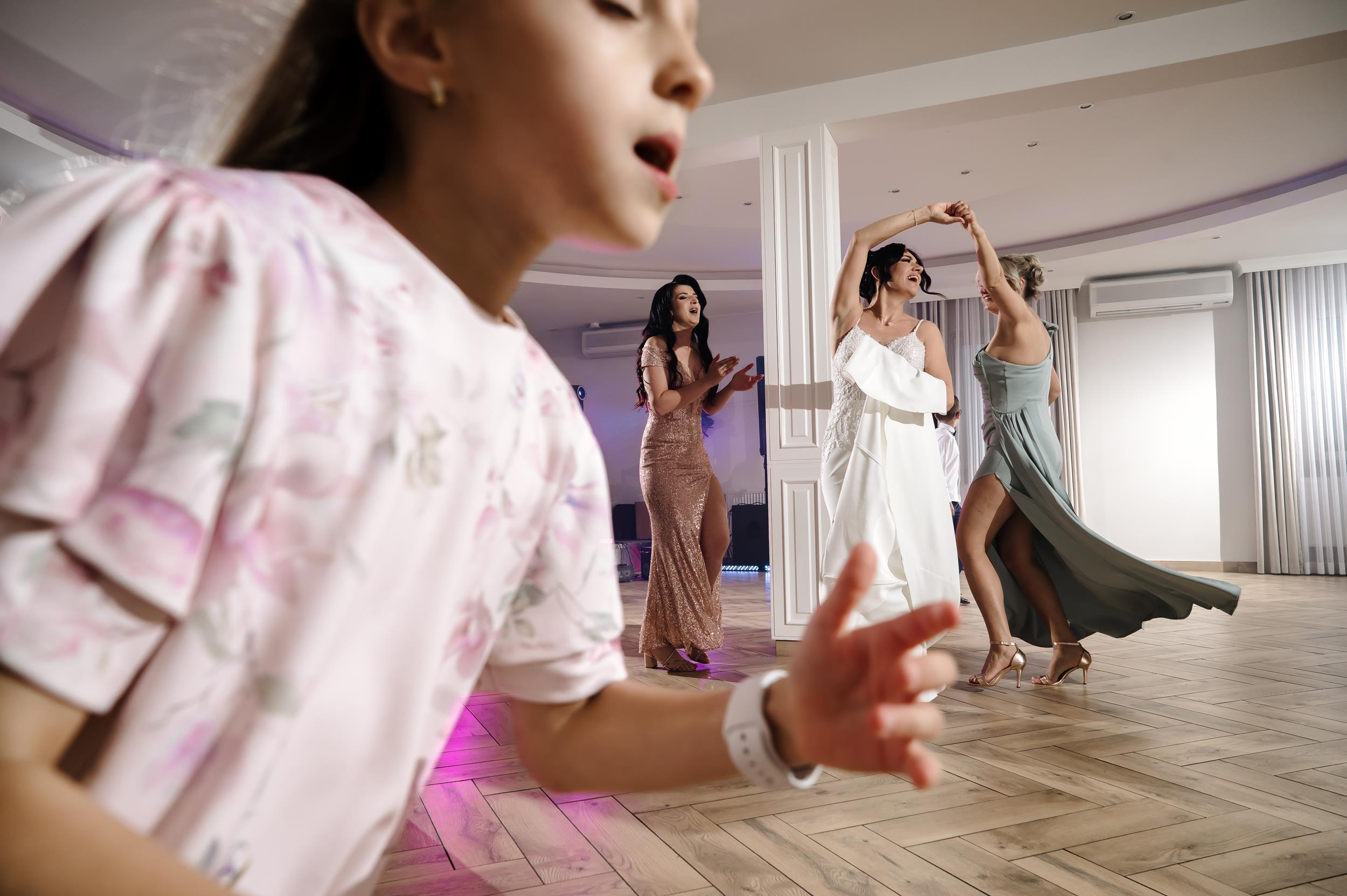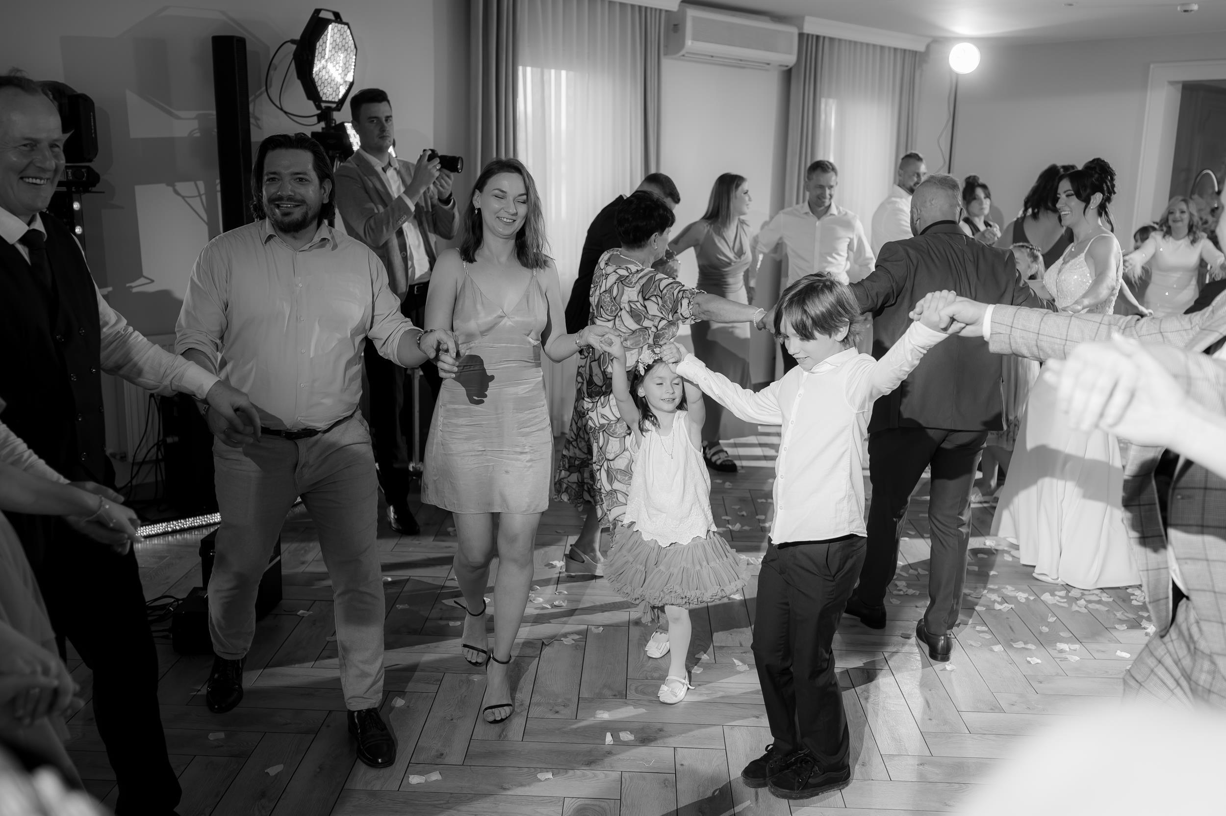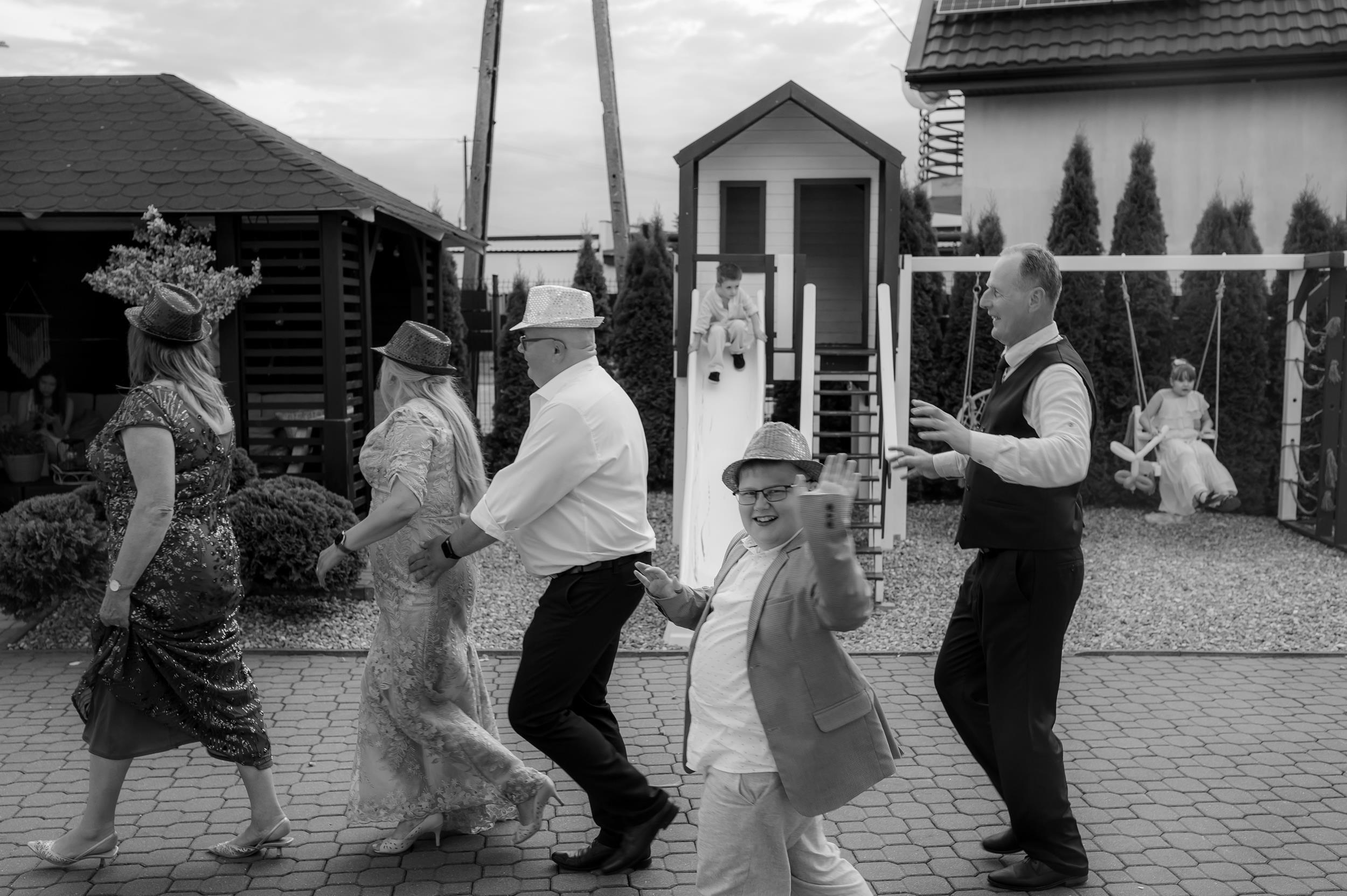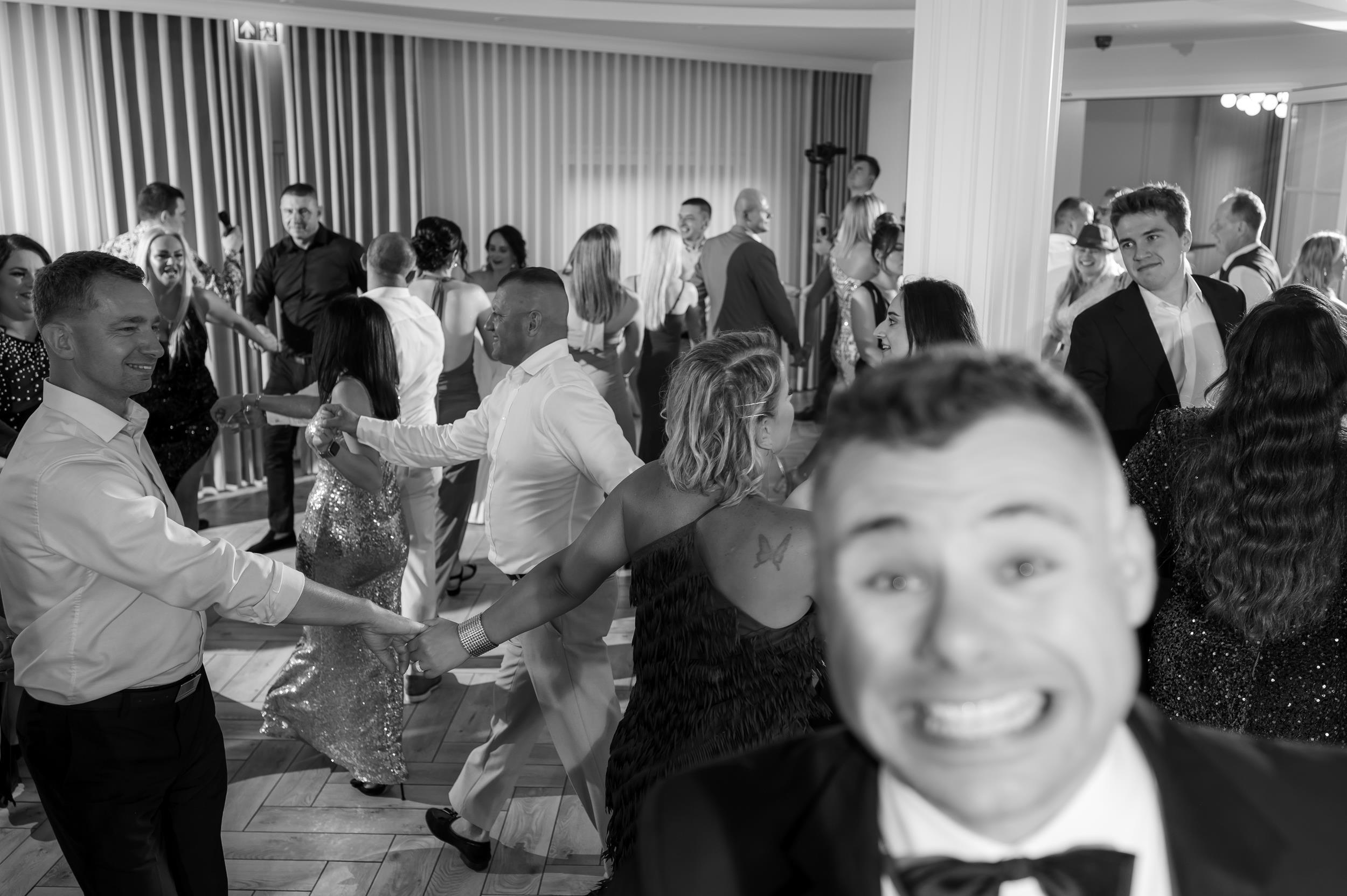 Po ceremonii przenieśliśmy się do Sali Honotu w Lasowicach, gdzie zabawa rozkręciła się błyskawicznie. I nie – to nie są puste słowa. Ten parkiet naprawdę płonął! Dawno nie widziałam tylu roześmianych twarzy i tak dobrej energii. Były klasyczne tańce, rodzinne wygłupy i momenty, które aż prosiły się o zatrzymanie w kadrze.