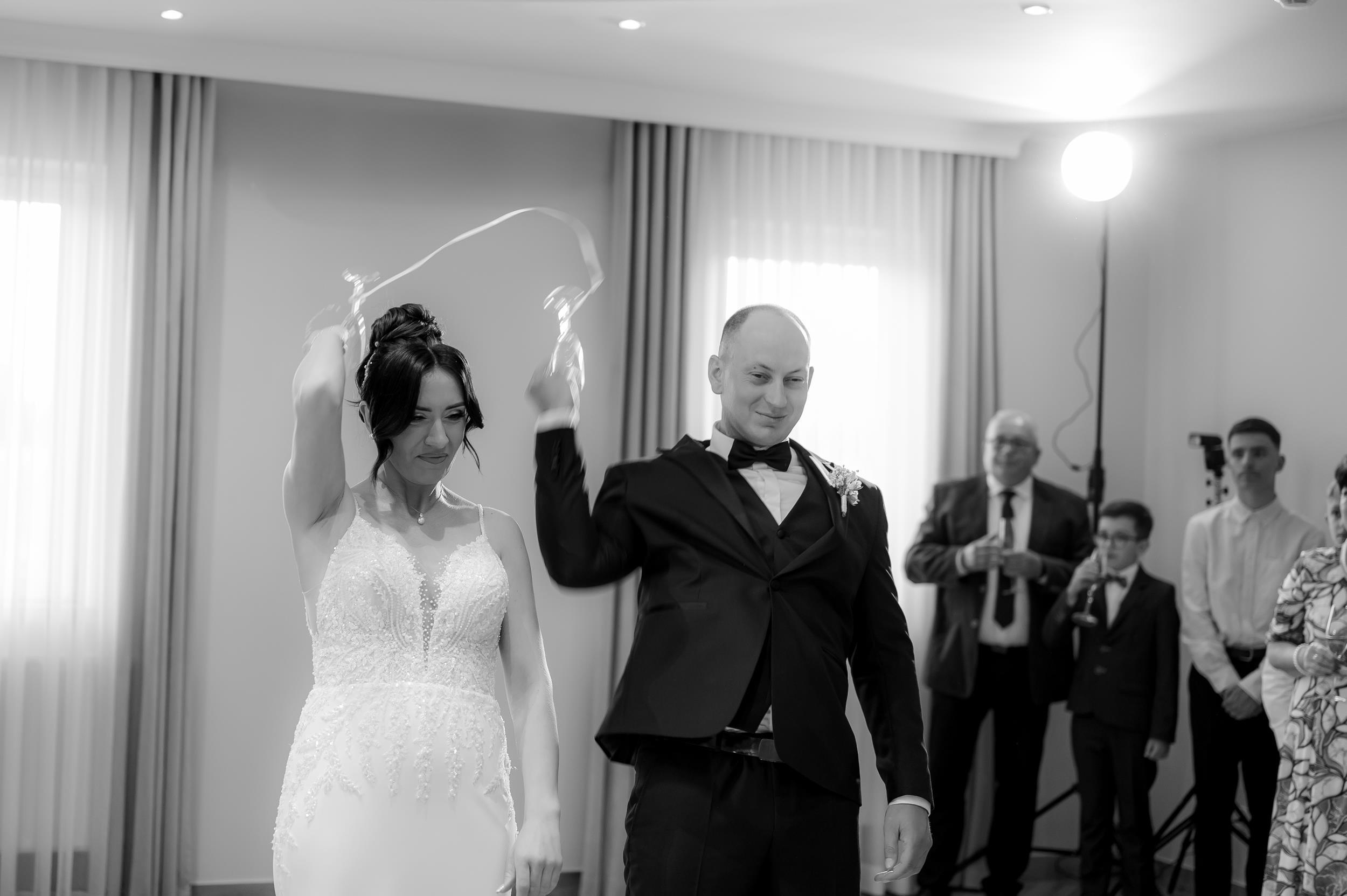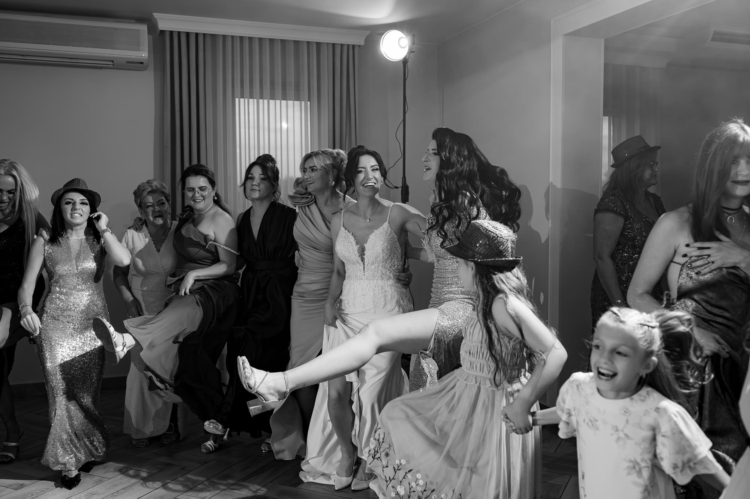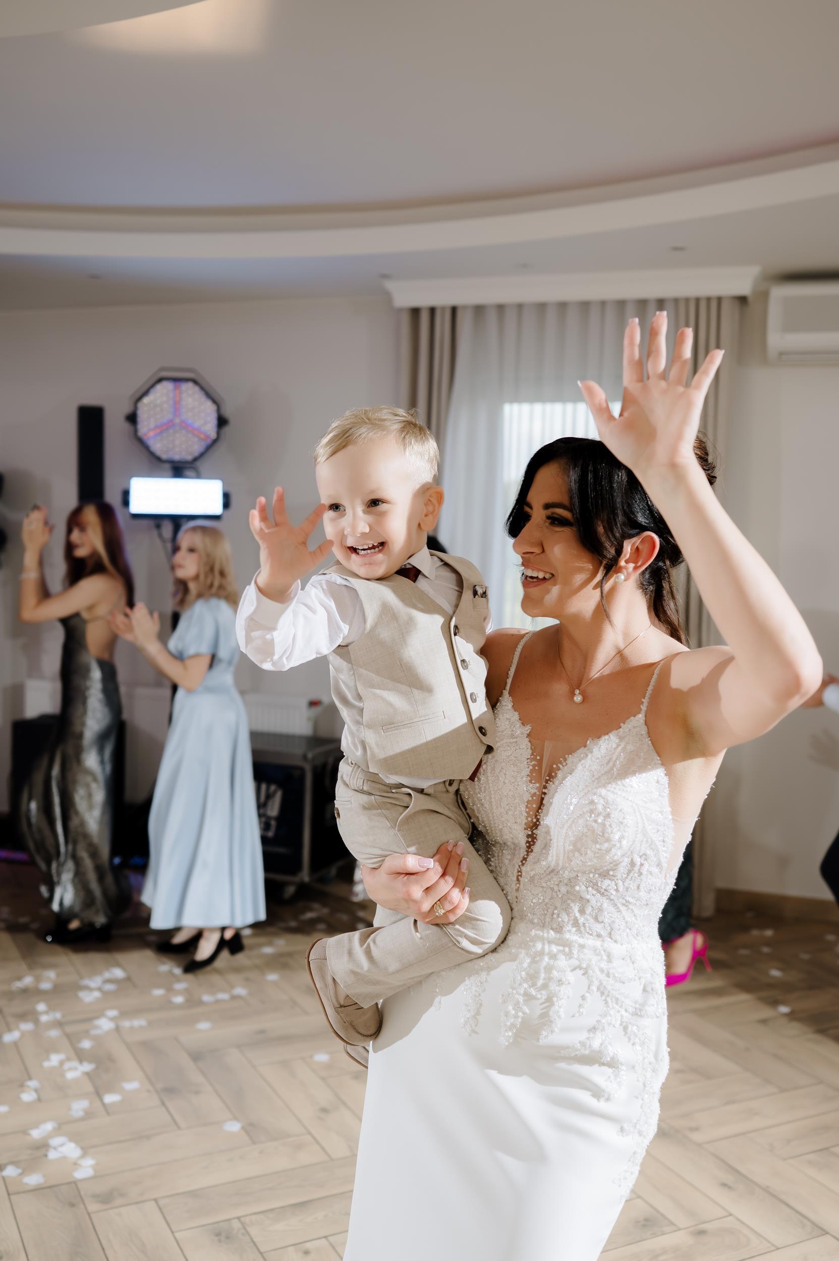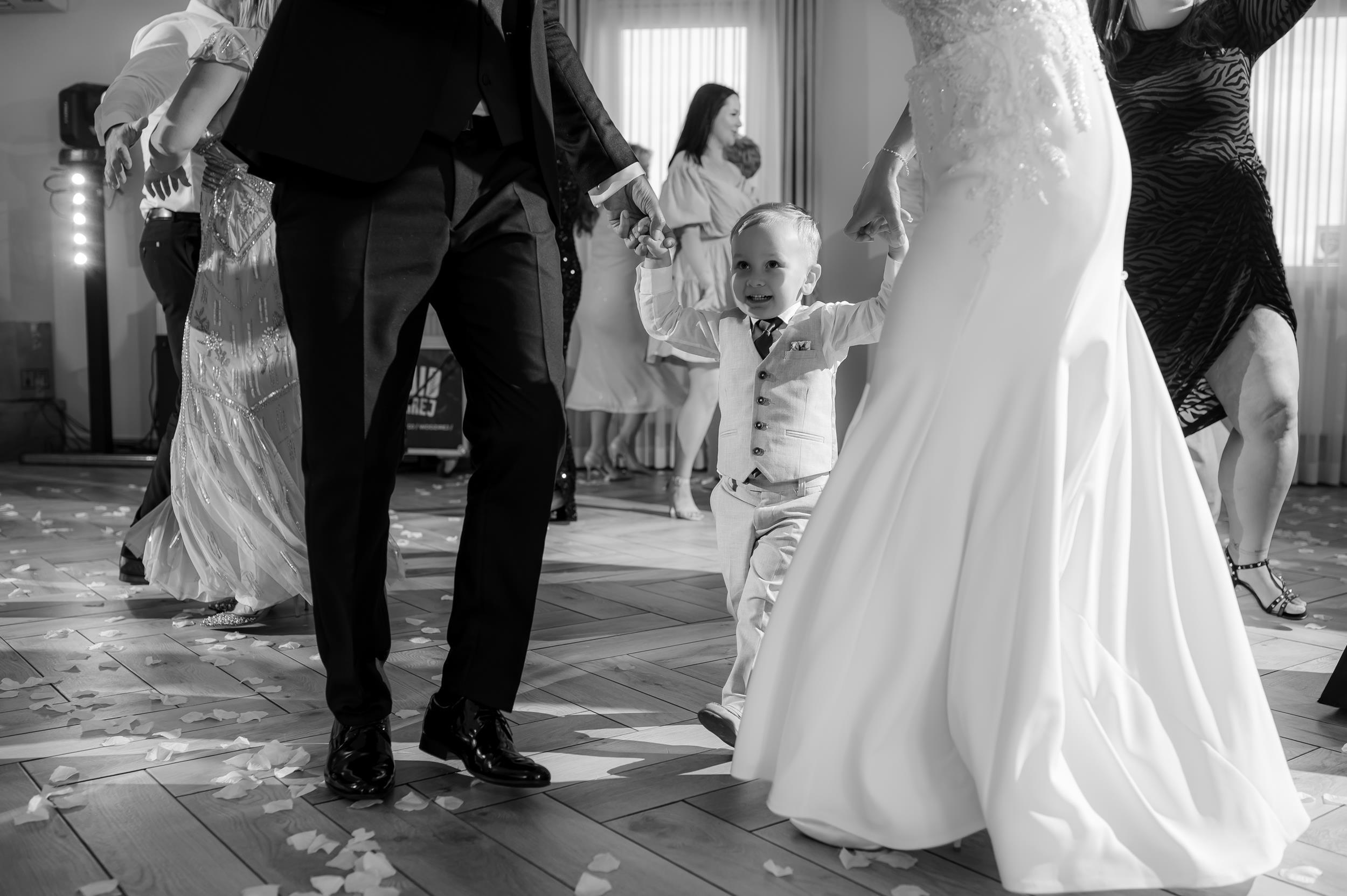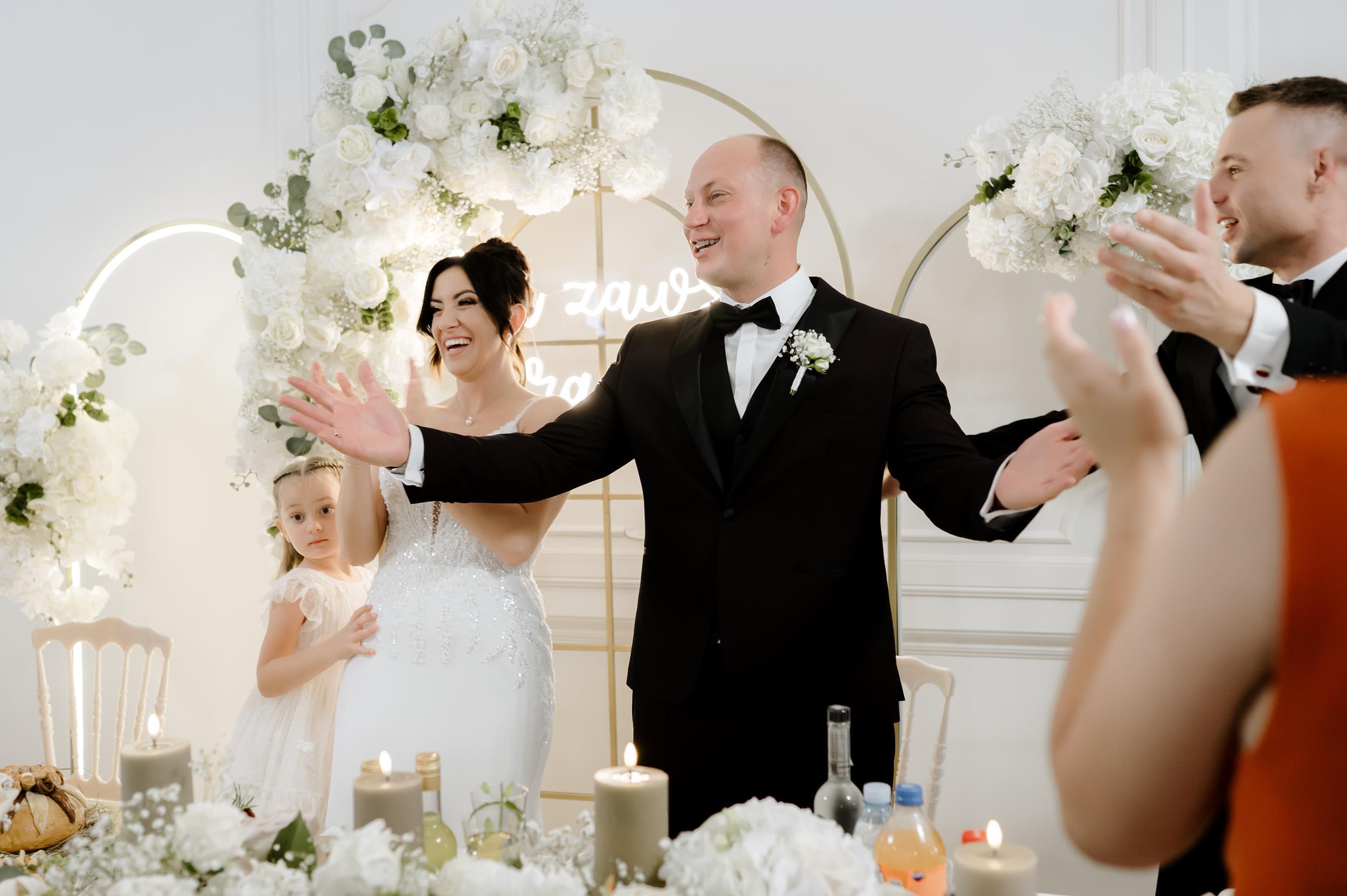 Po ceremonii przenieśliśmy się do Sali Honotu w Lasowicach, gdzie zabawa rozkręciła się błyskawicznie. I nie – to nie są puste słowa. Ten parkiet naprawdę płonął! Dawno nie widziałam tylu roześmianych twarzy i tak dobrej energii. Były klasyczne tańce, rodzinne wygłupy i momenty, które aż prosiły się o zatrzymanie w kadrze.