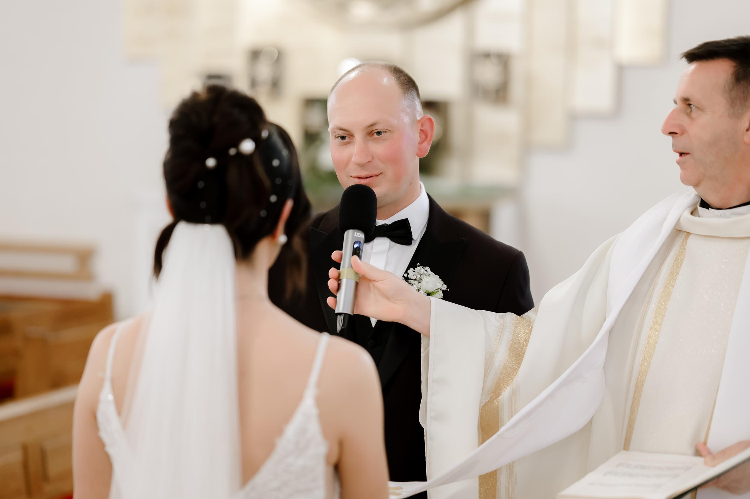 Ceremonia odbyła się w Parafii Chrystusa Króla w Radomiu, w pięknym świetle, przy akompaniamencie spojrzeń najbliższych. Wzruszenia nie brakowało – szczególnie podczas przysięgi, ale równolegle można było usłyszeć ciche chichoty dzieci, ciepłe spojrzenia rodziny, i tę specyficzną, przyjazną atmosferę, którą tworzą tylko ludzie sobie naprawdę bliscy.