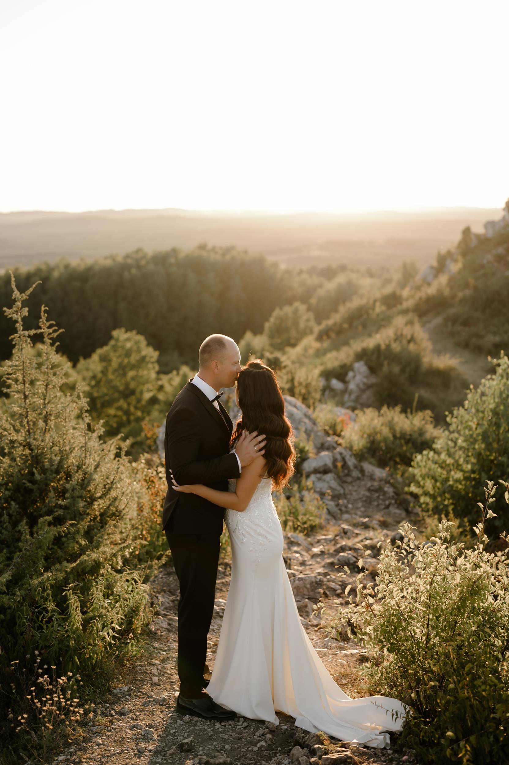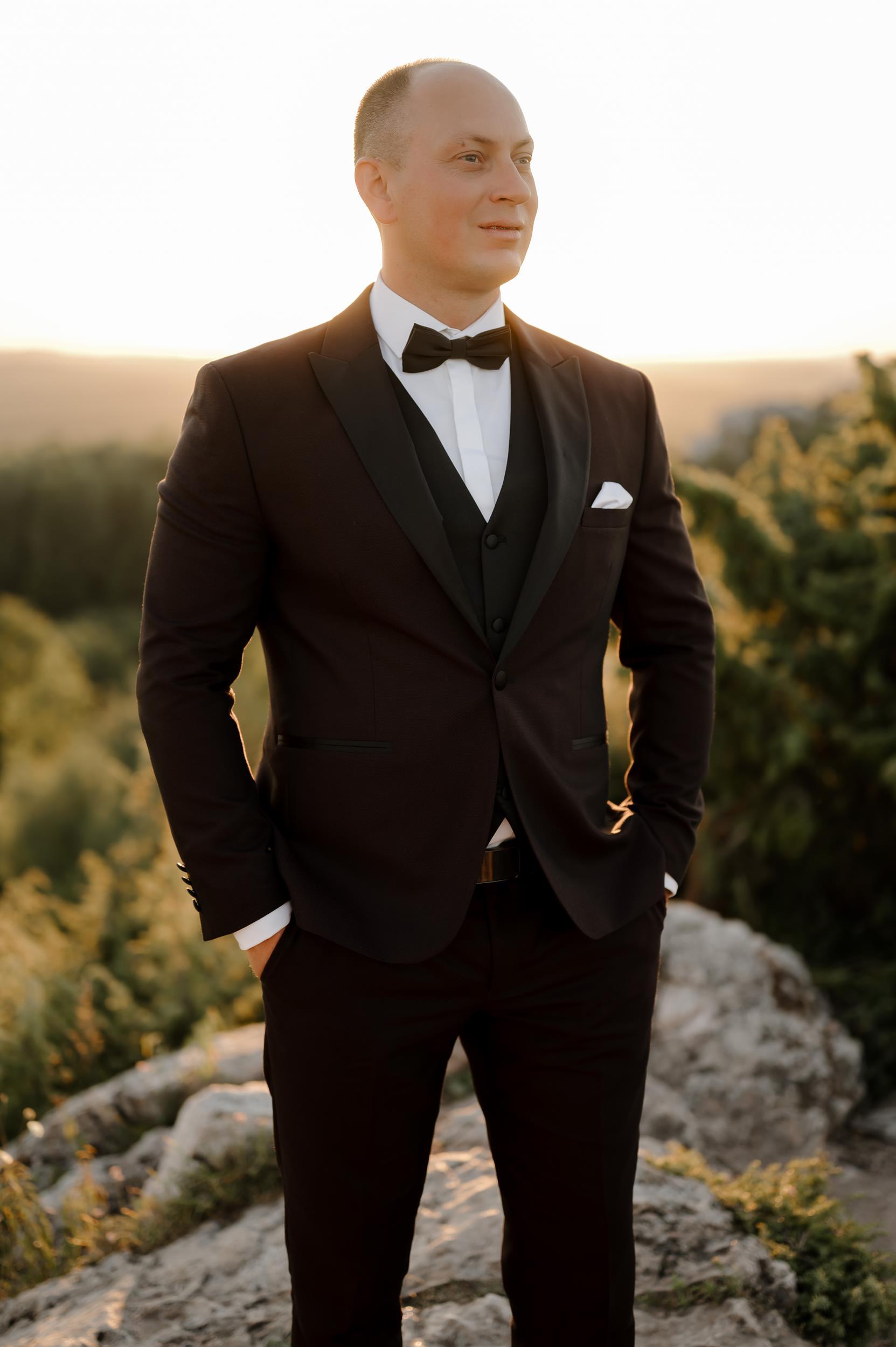 Spotykamy się zwykle 1-2 godziny przed zachodem słońca, by złapać to najpiękniejsze, złote światło. Wejście na szczyt zajmuje kilkanaście minut (warto mieć wygodne buty na zmianę!). Na górze mamy spektakularny widok 360° – idealny na naturalne kadry, które oddają klimat wolności, bliskości i miłości.